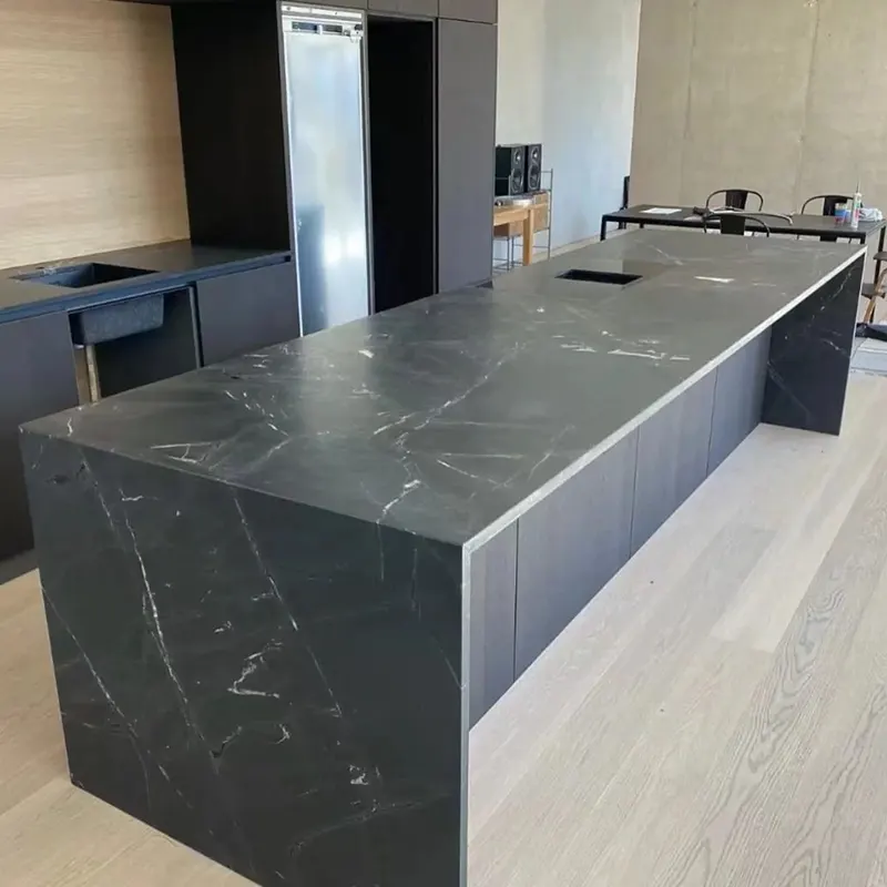 Sản phẩm: Bồn rửa thạch anh đen, bàn phụ tùy chỉnh, quầy Quartzite màu đen cho Bàn văn phòng