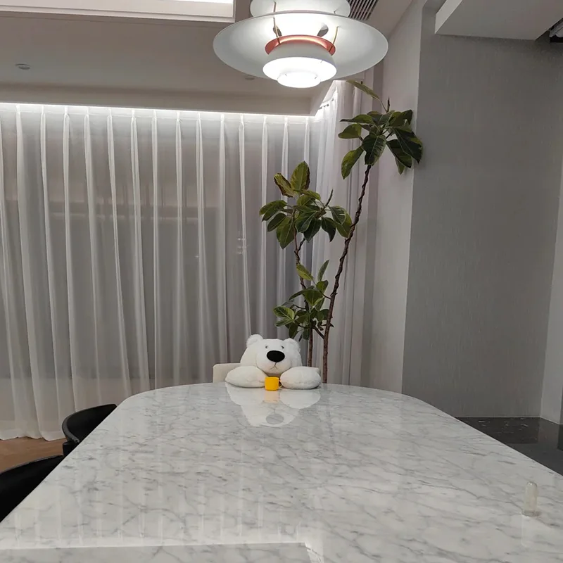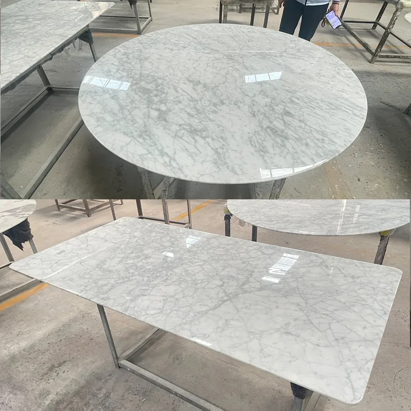 Carrara White Marble Tabletop là một sản phẩm đá phổ biến của đồ nội thất hiện đại. Đá cẩm thạch trắng này phù hợp để là mặt bàn bên, bàn cà phê, bàn ăn, v.v., nó có thể làm cho không gian bên trong ấm áp hơn.