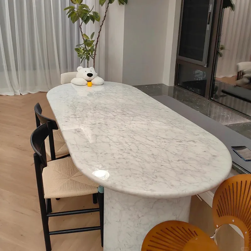 Xu hướng nhìn cổ điển đến và đi, nhưng cẩm thạch Carrara không bao giờ lỗi mốt. Trong một gác xép đương đại, một chiếc bàn bằng đá cẩm thạch trắng cũng thích hợp như trong một biệt thự cổ điển.