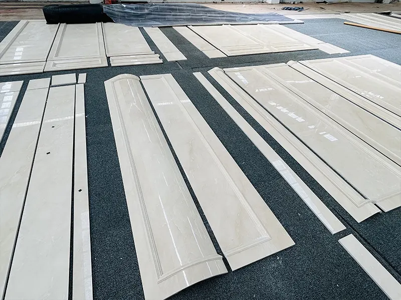 Nhà máy hiện đại của chúng tôi điều hành một đội ngũ thợ thủ công lành nghề với hơn 20 năm trong lĩnh vực này và máy móc hiện đại. Mỗi gạch hoặc bảng điều khiển nội thất, từ hình dạng tùy chỉnh đến chi tiết cạnh và cắt chính xác, thuộc kiểm soát chất lượng nghiêm ngặt để đảm bảo kết quả cuối cùng hoàn hảo.
