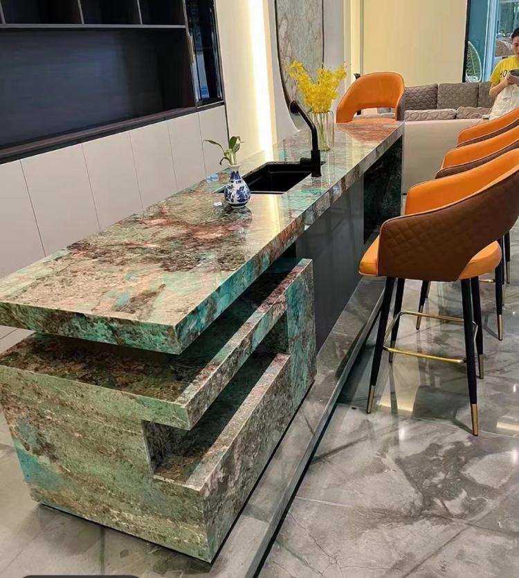 Mỗi tấm chúng tôi bán có một mẫu tự nhiên riêng biệt, vì vậy không có hai mảnh giống nhau. Điều này làm cho mỗi dự án đặc biệt. Khi chúng tôi sở hữu nhà máy và kho riêng của mình, chúng tôi kiểm soát tất cả các quy trình từ lựa chọn đá thô đến cắt và hoàn thiện chính xác. Có kinh nghiệm của nhiều năm trong quá trình xử lýQuartzite, Đá cẩm thạch và đá granit, nhân viên của chúng tôi đảm bảo rằng khách hàng sẽ nhận được sự xuất sắc về kỹ thuật cùng với sự hấp dẫn thẩm mỹ.