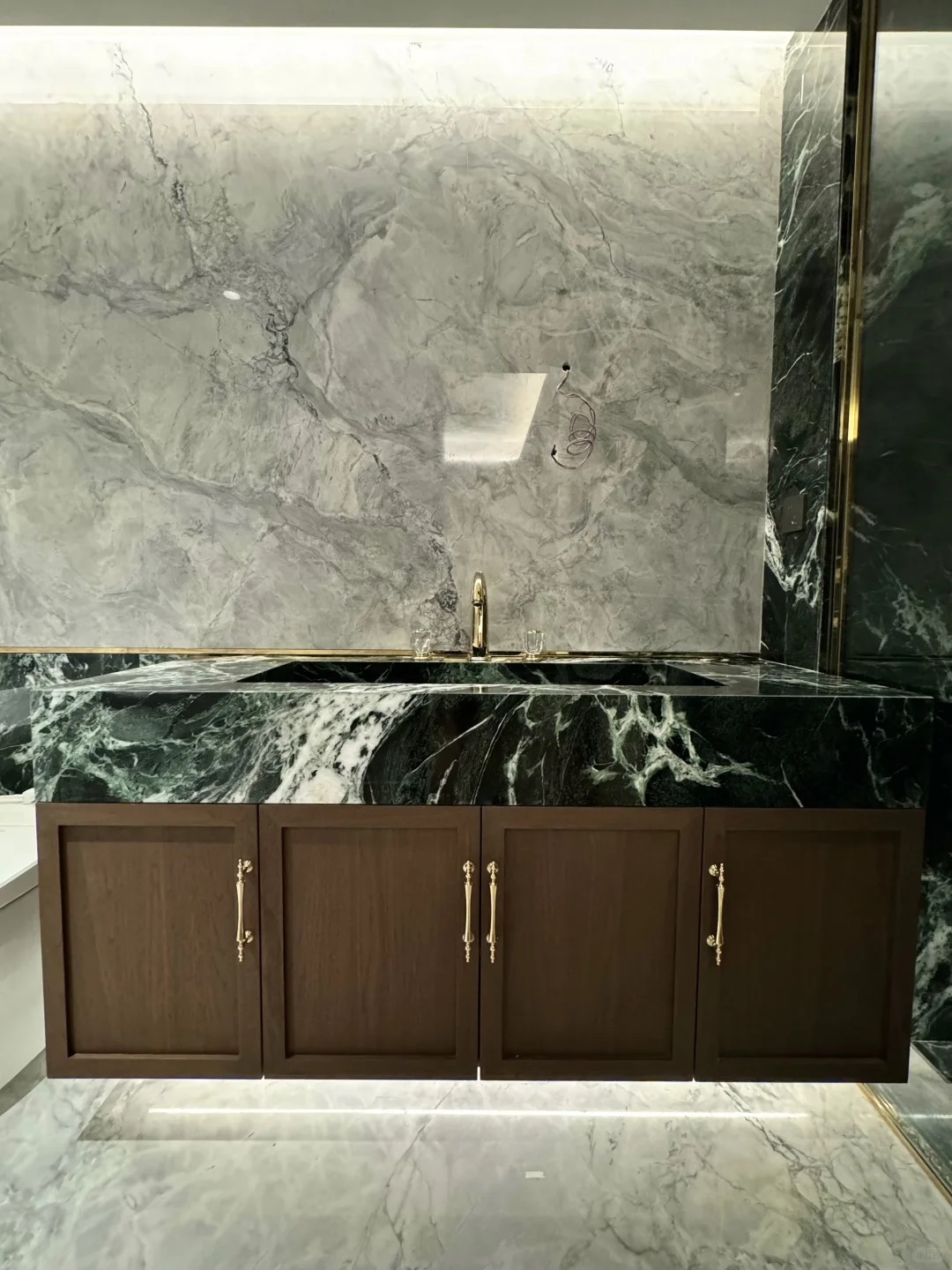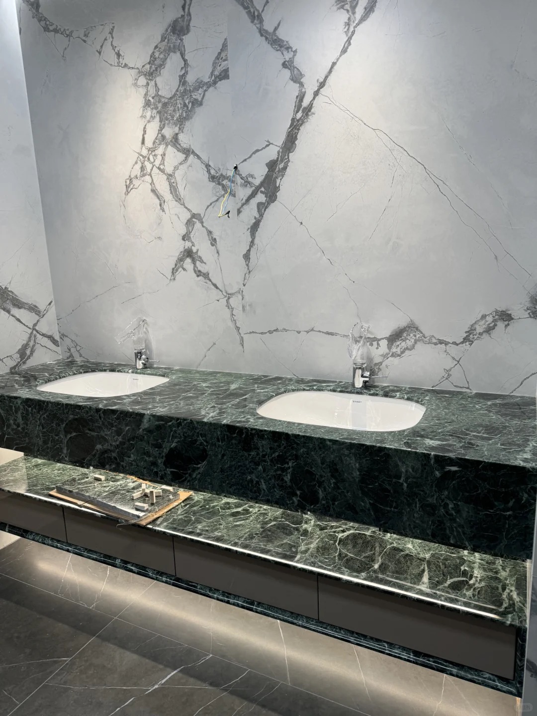 Đá cẩm thạch màu xanh lá cây:Verde Alpi Marble là một viên đá cẩm thạch sang trọng với màu xanh lá cây và ít vân hơn. Nó hoàn hảo cho một người không mong muốn một cái nhìn đương đại.