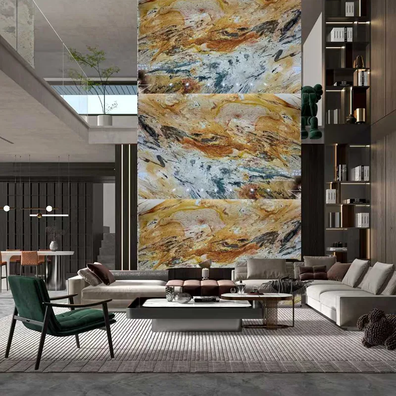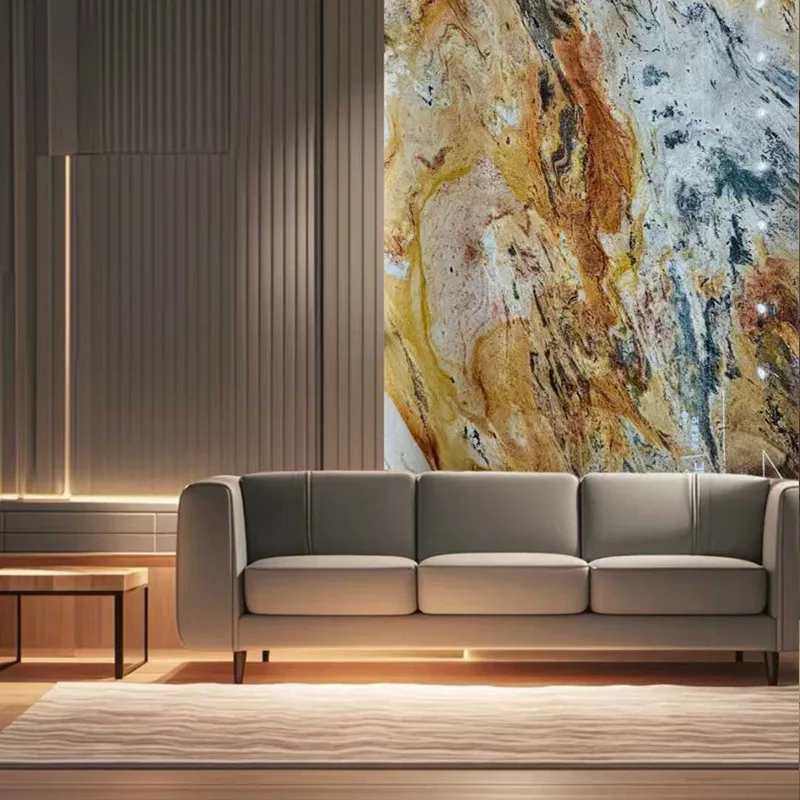 Quartzite vàng Picasso được tìm kiếm cho các mặt bàn, tường và sàn sang trọng do các mẫu thạch anh độc đáo của nó. Bảng màu nhiều màu của Picasso Gold dễ dàng hài hòa với các thiết kế hiện đại hoặc cổ điển. Hình ảnh một bàn ăn thạch anh như tiêu điểm của bạn; Mỗi bữa ăn trở thành một sự kiện phòng trưng bày.