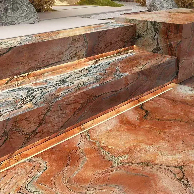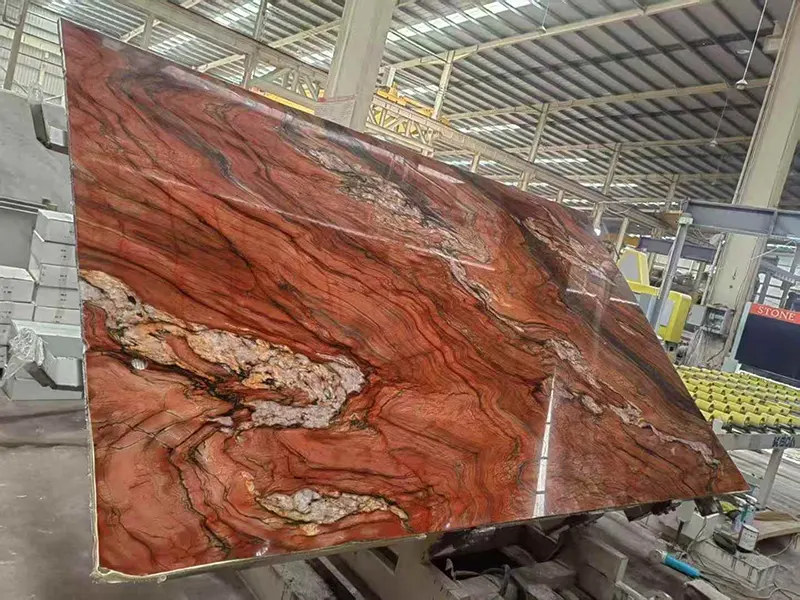 Quartzite sóng Cách mạng, còn được gọi là Quartzite Red Revolution, là một viên đá tự nhiên nổi bật và rực rỡ với màu cơ bản màu đỏ đậm. Có nguồn gốc từ Brazil, vật liệu độc đáo này được biết đến với độ bền, độ hấp thụ nước thấp và độ cứng. Mô hình độc đáo của sóng đen, nâu và trắng trên tấm, được tạo ra bởi tự nhiên qua hàng triệu năm, tạo ra một năng lượng và kịch tính không thể được nhân đôi. Tên sản phẩm: Slab Quartzite Revolution Wave Nhà máy: Xiamen Wow Stone Co., Ltd. Nguồn gốc Quốc gia: Brazil MOQ: 1 PC Bề mặt: Đánh bóng, mài giũa Sử dụng: đa năng cho trang trí bên trong và bên ngoài, thường được sử dụng trong gạch tường và sàn, mặt bàn, ngọn phù phiếm, cầu thang, cột, khảm, và nhiều hơn nữa, làm cho nó trở nên lý tưởng cho các dự án xây dựng và thiết kế khác nhau.