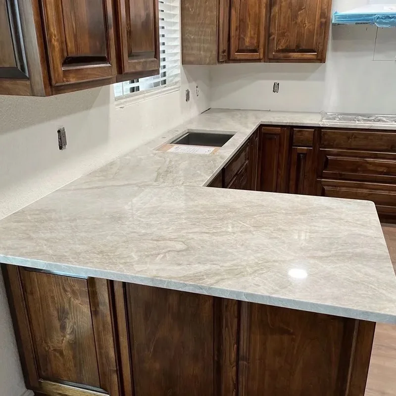 Có Taj Mahal Quartzite Mặt bàn và Backsplashes tạo ra một cái nhìn lịch sự thanh lịch mà không có đường may. Đảo lớn hoặc Taj Mahal Quartzite Taj Mahal tùy chỉnh bề mặt trở thành tâm điểm của ngôi nhà của bạn cũng trông tuyệt vời với nó.