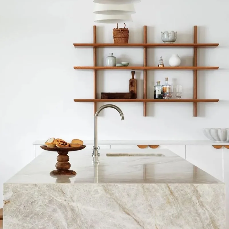Úc: Một thị trường đang phát triển cho các bản cài đặt băng ghế Quartzite của Taj Mahal, thường được kết hợp với tủ gỗ và đồ đạc hiện đại.