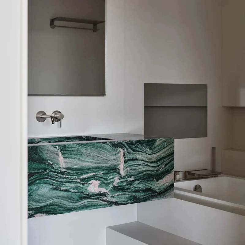 Verde Lapponi Quartzite đặc biệt được các nhà thiết kế nội thất yêu thích không chỉ đơn giản là vì vẻ đẹp tự nhiên mà vì sự phù hợp liền mạch trong không gian. Đá thạch anh xanh này cung cấp cả sự hữu ích và cân bằng thẩm mỹ cho dù dự án là nơi nghỉ ngơi lấy cảm hứng từ thiên nhiên ấm áp hay một ngôi nhà gia đình tối giản hiện đại.
