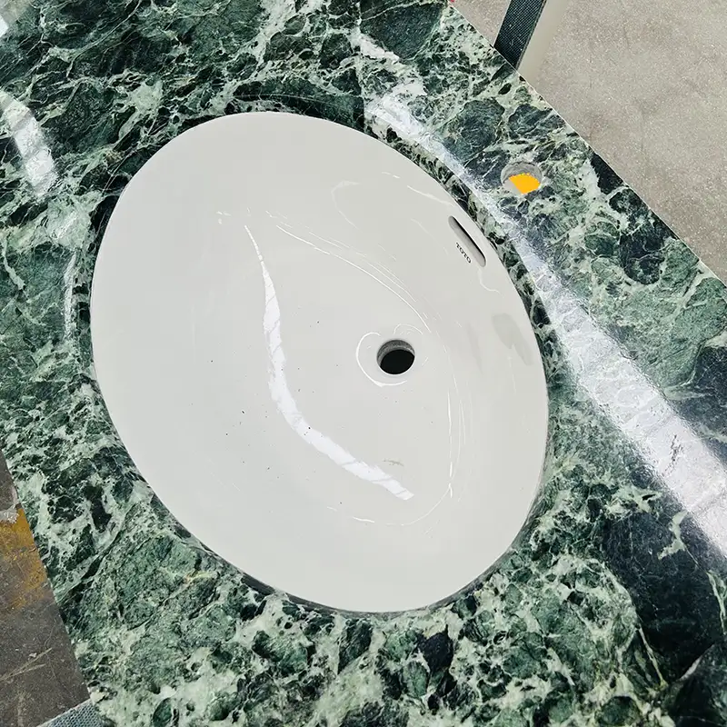 Verde Rameggiato Marble Vanity Top không chỉ là một mặt bàn; Nó nhập khẩu vẻ đẹp, hòa bình và sự tinh tế sẽ không bao giờ lỗi thời vào thói quen hàng ngày của bạn. Sản phẩm này giới thiệu một cái gì đó đặc biệt cho mọi phòng, cho dù bạn đang xây dựng một nơi ẩn dật yên bình trong nhà của bạn hay sửa sang lại một phòng tắm khách sạn sang trọng.